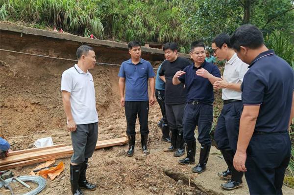 8月20日上午,港航水利集团党委书记、董事长易放辉赴资兴市州门司镇鸭公垅村指导对口支援救灾重建工作。